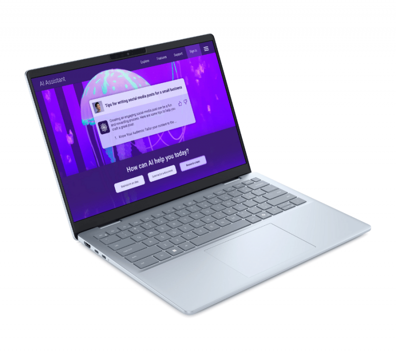 Màn hình 14 inch viền mỏng giúp không gian hiển thị rộng rãi hơn, hình ảnh sắc nét và sống động, phù hợp cho công việc thiết kế, xử lý dữ liệu hay giải trí nhẹ nhàng sau giờ làm. Dell cũng trang bị bàn phím có độ phản hồi tốt, giúp thao tác nhập liệu nhanh, chính xác và êm ái hơn.